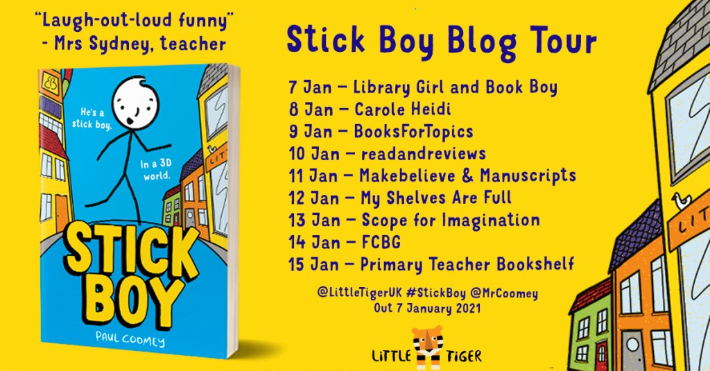 Stick Boy is a book about a boy who is literately a stick boy. The entire world is in 3D whilst Stick Boy is just a stick. He was bullied by lots of different kids at his old school so he had to move to a different city and to a new school. At his new school, there are two main bullies who decided they would bully Stick Boy. Their names are Gretchen and Sam. Gretchen bosses Sam around. Stick Boy creates new friendships and stops a mega mall from taking his mum’s job and spying on all of the people who bought an object that came with a free Homebot. The Homebots have cameras and microphones in them so that the people behind all of this can make lots of money from sharing funny and embarrassing videos of people around the city.