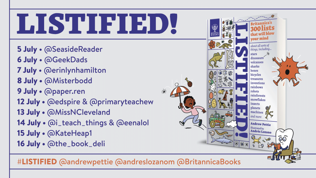 LISTIFIED! Britannica’s 300 lists that will blow your mind by Andrew Pettie, illustrated by Andrés Lozano out now in hardback (£18.99, Britannica Books)