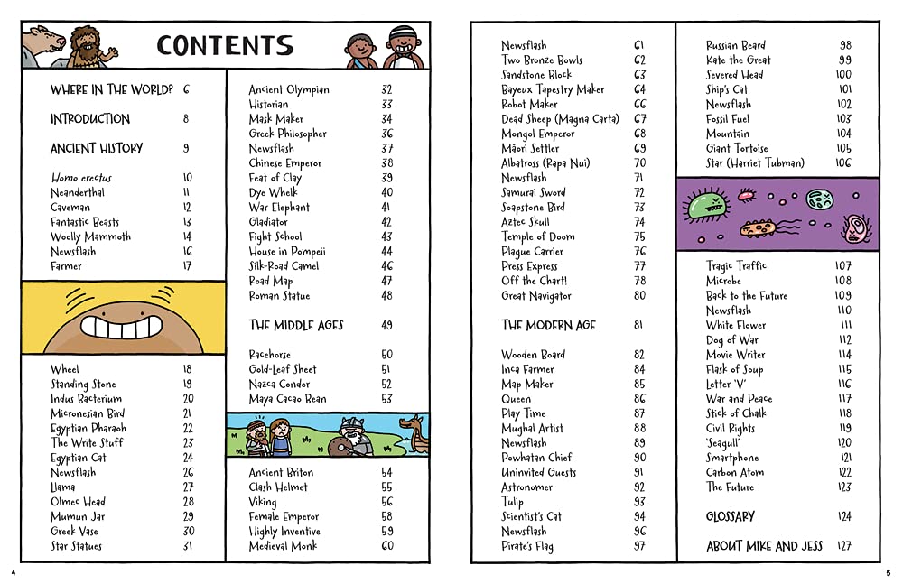 With four types of pages that are packed full of facts, readers are able to take a closer look. “A Day in the Life of a …” gives a unique point of view while “The Secret Diary of a …” goes into more detail. “Newsflash” gives facts about a specific time period and “The Bigger Picture” zooms in on one aspect of history.