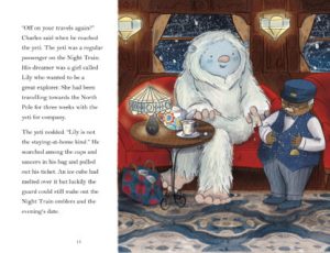 I love how each of the characters defies stereotypes. There’s a yeti who travels with a little girl who is a great explorer, a male ballerina, a princess who doesn’t need rescuing and a female train driver. The final passenger is a monster who desperately wants to help his dreamer stop being scared. Each character loves their child and wants nothing but good things for them as they sleep peacefully.