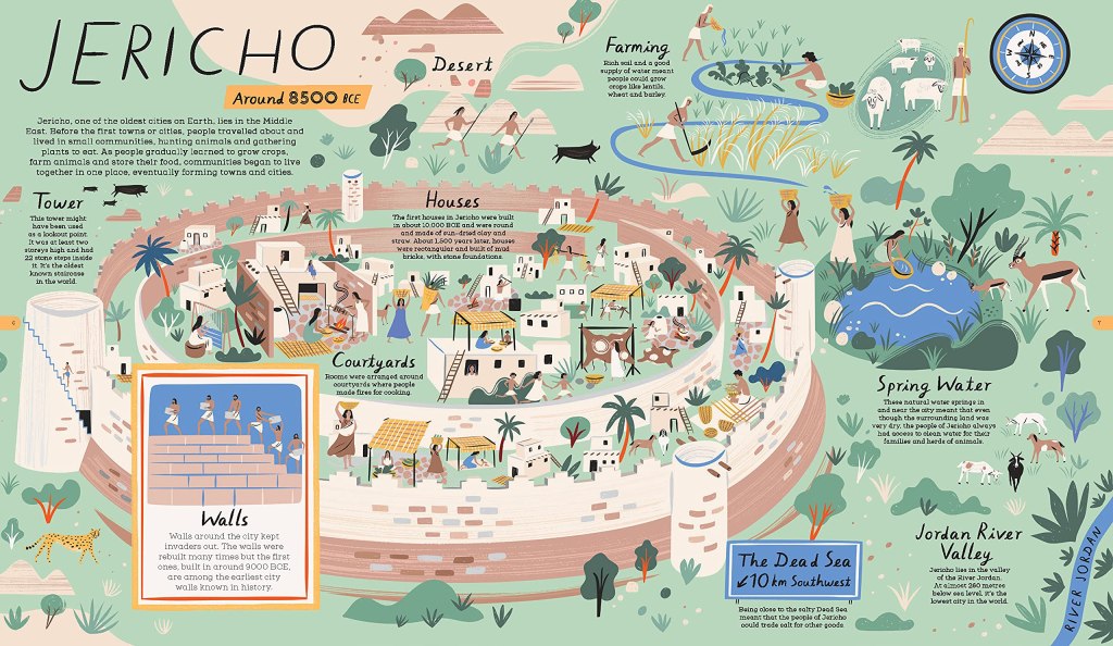 8500 BCE Jericho – 500 BCE Athens – 100 CE Rome – 940 CE Jorvik – 1670 CE Amsterdam – 1880 CE London and so many more in between. Readers discover the landmarks, technology, significant people and important events that shaped each city.