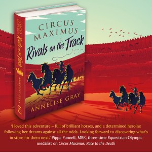 Circus Maximus: Rivals on the Track is the stunning sequel to Annelise’s Gray’s Roman adventure, Race to the Death. Set in Roman-controlled Northern Africa in AD 38, it paints a vivid picture of the power and passion of the world of horses and chariot racing.