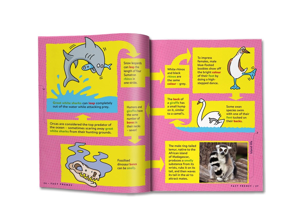 One of the best things about these book is that they’re a bit like “Choose Your Own Adventure”. Each fact is linked to the next by a common element. Children can follow on fact to fact with the opportunity to break off and follow the thread of specific topic on another page in the book. This non-linear reading experience allows children to explore their interests and dip in and out at will, creating a true reading for pleasure experience.