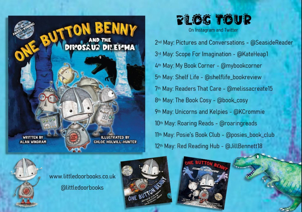 One Button Benny and the Dinosaur Dilemma is the third book in this delightful series from Alan Windram & Chloe Holwill-Hunter. It’s party time in robot town. Benny and his friends are practising their moves for the big night when they fall into a huge sinkhole. They’re shocked when a dinosaur crashes out of the darkness. Fortunately, Benny can push his big red button to stop the dinosaur in his tracks and make a new friend. Their Friday night party just got even better!