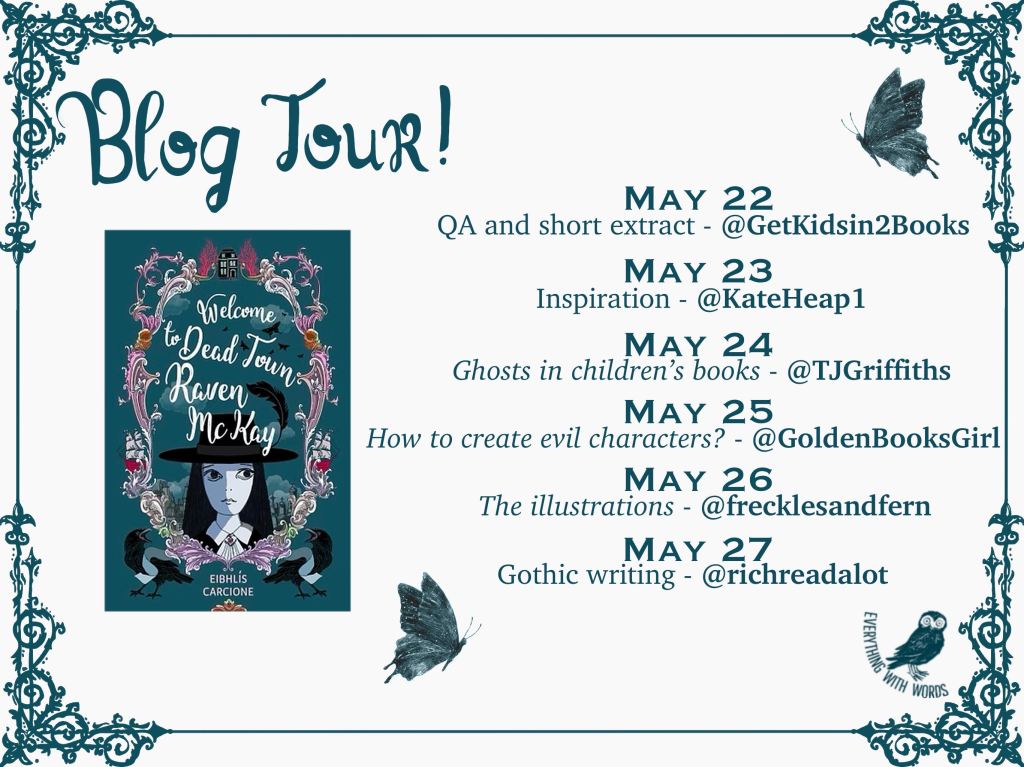 I love ghost stories and gothic novels. I thought it would be exciting to write a story about a place where the living and the dead live side by side. In order to do that I had to create a gothic world of my own. This took time. I had to delve into my imagination, into folklore and into mythology. Grave’s Pass and Dead Town are inspired by the winding narrow hills of Cork city where I live. They’re also inspired by places in Sicily like Taormina, Erice and Randazzo where I’ve been on holidays. I include some of my favourite characters from folklore: A white lady, a red cap, a werewolf, a bogeyman and pooka horses. I also include animals that I like: a Maine coon cat, a labradoodle, a tortoiseshell cat. My main character Raven McKay came to me in a dream. I saw her with her suitcase with the faded sticker of the black butterfly in a hilly town with twisty narrow streets. In Celtic mythology, black butterflies symbolise the soul of the dead. I knew from early on that the black butterfly was important in my story. One of my favourite novels in the Irish language is Cré na Cille (Graveyard Soil) by Máirtín Ó Cadhain. It’s set in a graveyard where the newly dead arrive bringing all the local news to those already in their coffins. I love the dark humour and the cast of characters and rogues in this novel. This book probably influenced me unknown to myself. The first few pages of Welcome to Dead Town Raven McKay came to me quickly. I have hardly changed a word. After that the story grew and took shape. I loved writing it.