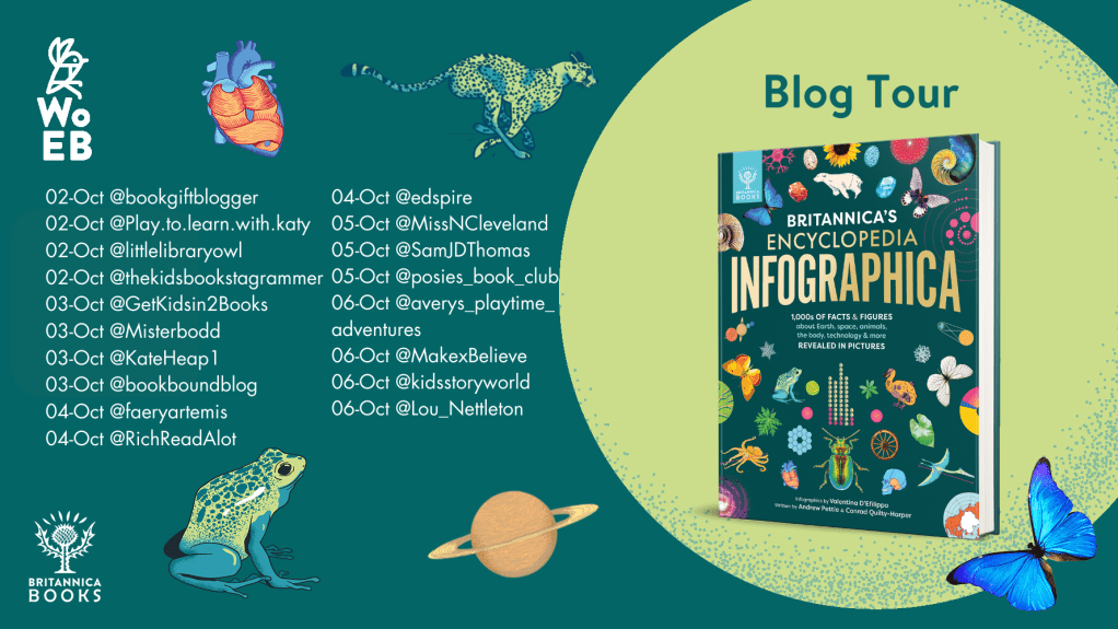 But it’s not just all about animals. Readers can explore space; land, sea and sky; the living planet; the human body; and the human world. Advice on how to read the book and approach the infographics sets children off on the right track thinking about colours, order, measures, scale and comparisons.