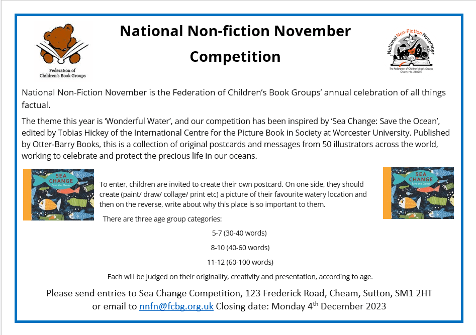 National Non-Fiction November is the Federation of Children’s Book Groups’ annual celebration of all things factual. Born out of National Non-Fiction Day, the brain child of Adam Lancaster during his years as Chair, the whole month now celebrates all those readers that have a passion for information and facts and attempts to bring non-fiction celebration in line with those of fiction.