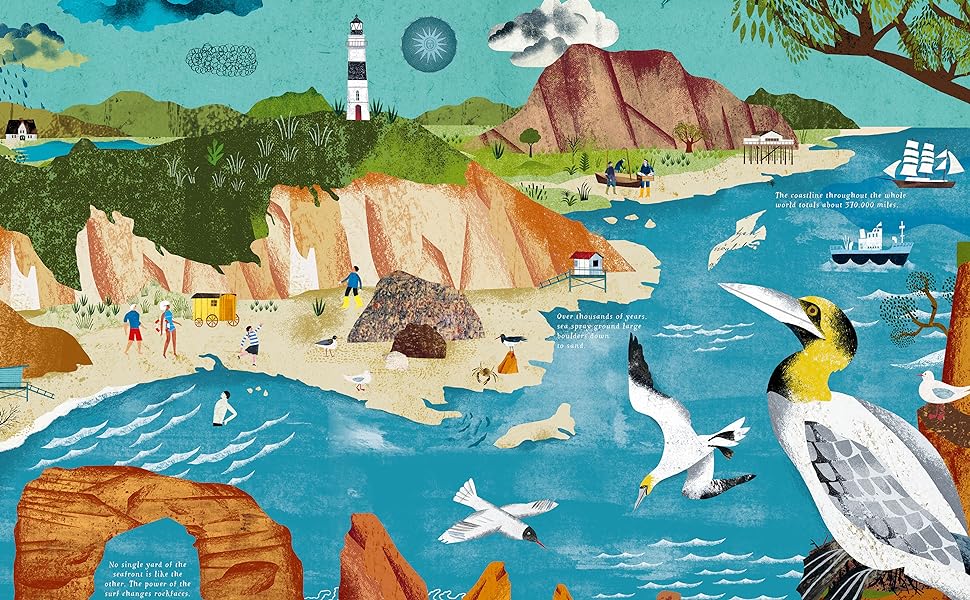 This gorgeous book takes readers on a trip around the world’s oceans. The incredibly detailed double-page spreads examine coastal habitats, life in a coastal settlement, beautiful seashores, native animals, coastal plants, the whaling industry, tourism and climate change. Maps are combined with historic events and fascinating facts to give readers a full picture of the world’s oceans.