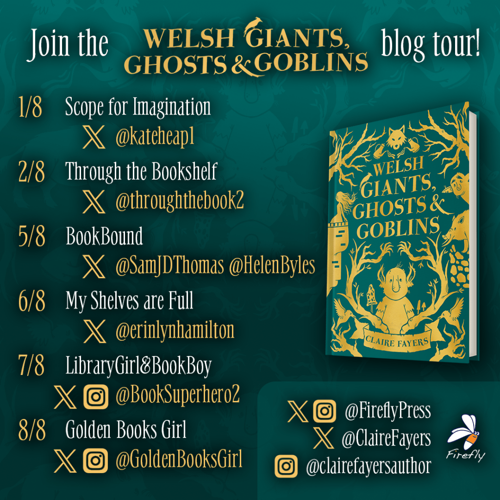 A wealth of Welsh myths, legends and ghost stories are reimagined for contemporary younger readers in Claire Fayers’s Welsh Giants, Ghosts & Goblins. Meet Idris, the teenage giant king on a quest to collect stories. As he travels across Wales in this anthology, readers encounter a vengeful house goblin, a ghost that steals life from the living, dwarves that have moved in beneath someone’s garden, a tea party of Lady ghosts, a furry trickster goblin and many other fascinating and devious fairy folk besides!