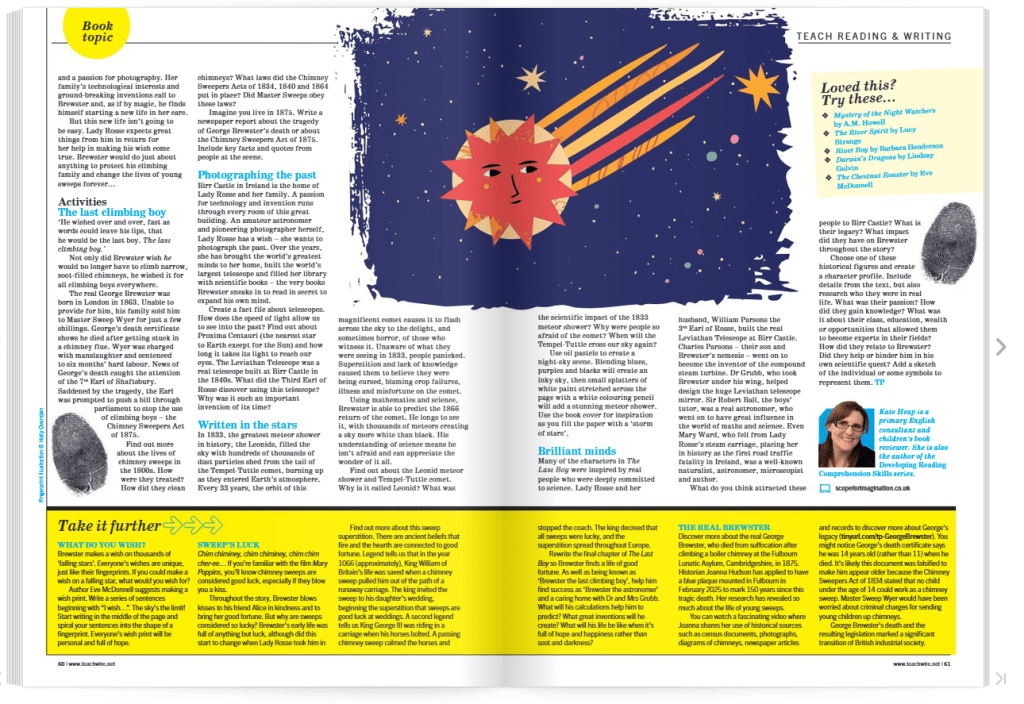 A gift for maths, probability and the science of the stars pulls Brewster into a life beyond his climbing family. His ability to work out calculations and predict the arrival of a magnificent comet draws the attention of a wealthy lady who has a wish of her own. Lady Rosse has the most amazing telescope and a passion for photography. Her family’s technological interests and ground-breaking inventions call to Brewster and, as if by magic, he finds himself starting a new life in her care.