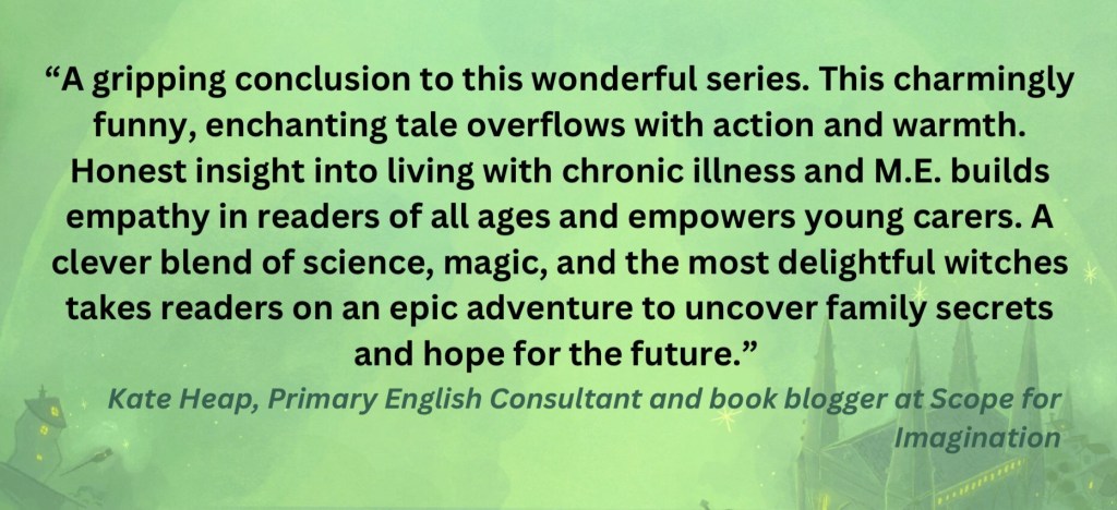 It has been wonderful to read and review the three books in the Toby Bean series over the past four years. Sally Doherty has created a young hero who is funny, brave and incredibly caring. Looking after his mum who is chronically ill, he shows resilience in the face of so many challenges yet still strives to find the best possible life for them both. The witches who become a part of their lives are delightful. They share their powers with Toby (sometimes with hazardous results), supporting him and his mum no matter what. Across the three books, Toby has grown in maturity, confidence and in his desire to find out who he truly is. With good friends by his side, he knows he will find the answer.